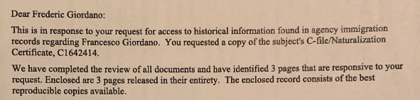 In the last milestone I wrote about, Request Estratto dell'atto di Nascita, the official document I would somehow have to acquire from Italy, I knew that I would also need to get my GGF Certificate of Naturalization which you can only get from the United States Citizenship and Immigration Services, also known as the USCIS.